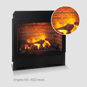 Krbová vložka s ohrevom a 3D efektom na zabudovanie do steny, nábytku alebo portálu s tehličkami.