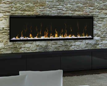 Elektrický krb s realistickým efektom ohňa Opti-Flame® LED a ohniskom s akrylovými kockami diamantových napodobenín.