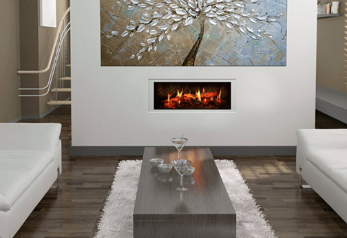 Luxusná elektrická krbová vložka na zabudovanie do portálu alebo priamo do steny - maximálne realistické riešenie.
