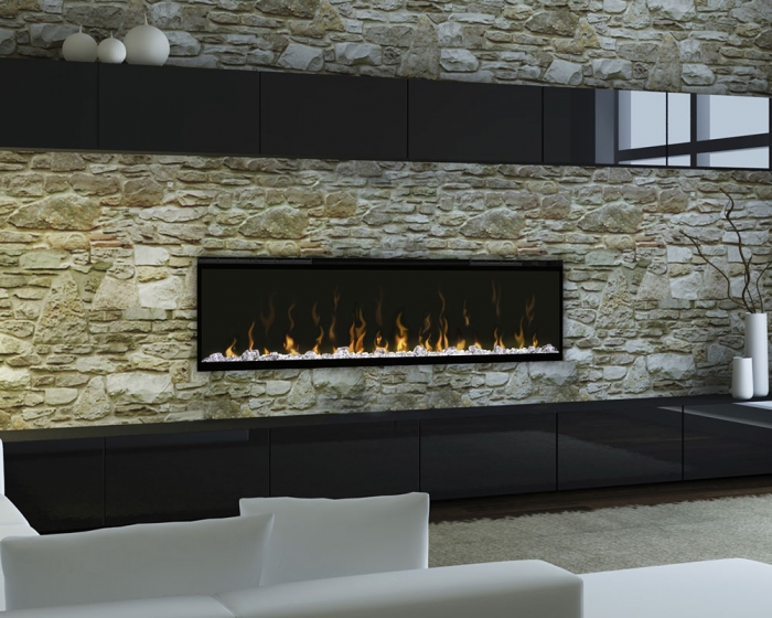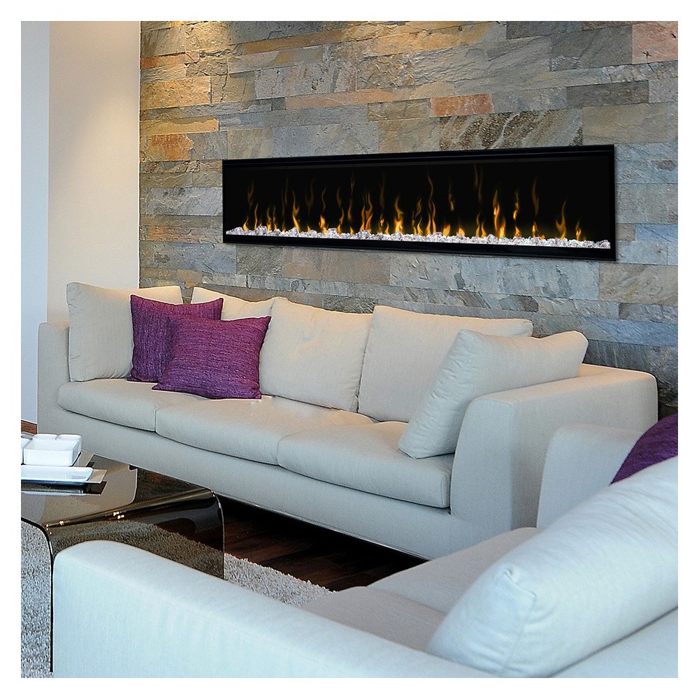 Moderný, veľkorysý krb s LED osvetlením s akrylátovými kryštálmi pre pocit luxusu a elegancie.
